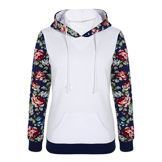 Women's Floral Printed Long Sleeve Pocket Pullover Hoodies