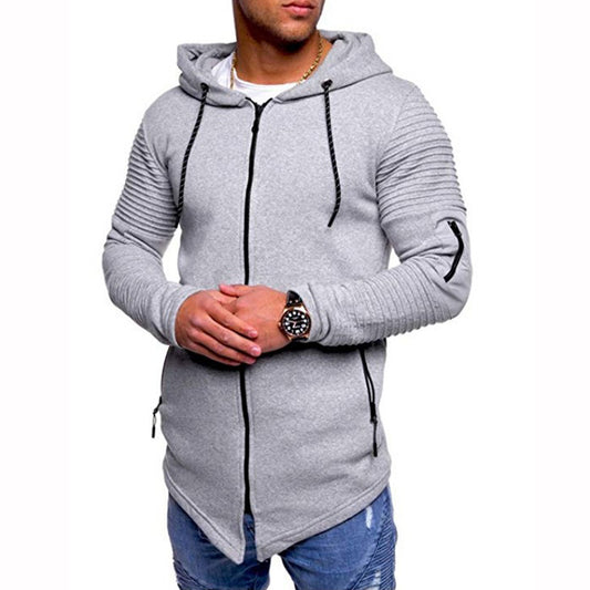 Men Casual Autumn Long Sleeve Slim Zipper Solid Color Hooded Coat Tops Blouse