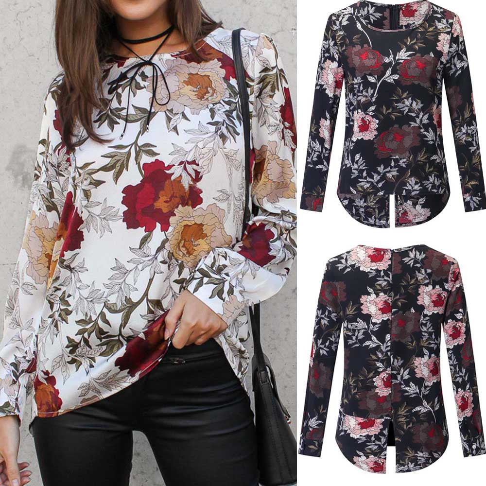 Fashion Women Autumn Long Sleeve Printed Loose Tops Casual Blouse T Shirt
