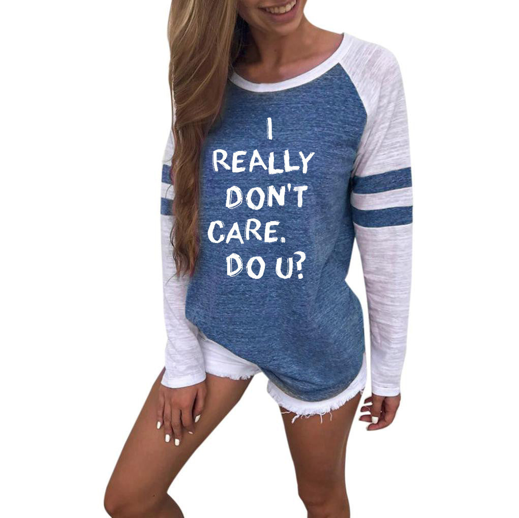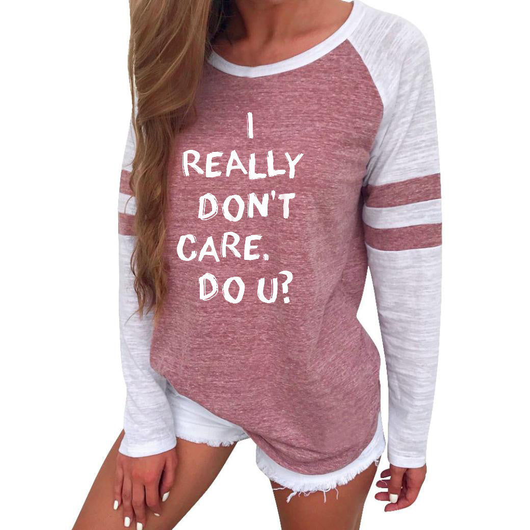 Fashion Women Letter Print Long Sleeve Splice Blouse Tops Clothes T Shirt